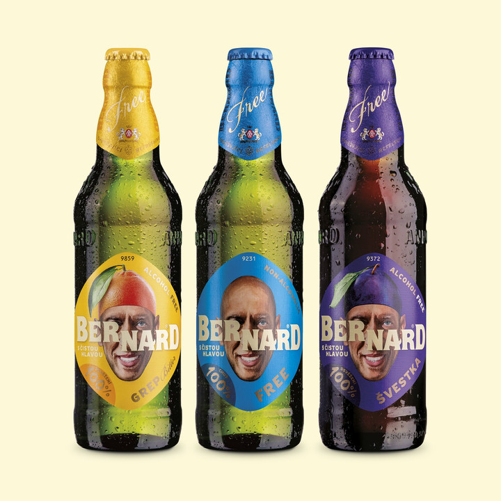Právě tvář, resp. hlava Standy Bernarda se stala hlavním motivem reklamních kampaní a také etiket nealkoholických piv. Grafici v duchu sloganu Bernard s čistou hlavou Standu nejprve „ostříhali“ dohola, následně mu hlavu obarvili a upravili podle nových ovocných příchutí oblíbeného nápoje. „Lidé mě zastavovali a divili se, že mám vlasy, z reklam a etiket mě znali holohlavého. Netušili, že je to práce grafiků. Myslím, že se dobře bavili úplně všichni, my i zákazníci,“ s úsměvem vypráví Stanislav Bernard. Jedním z oblíbených suvenýrů z pivovaru se pak staly čepičky, které jednotlivé příchutě symbolizují. Zatím poslední příchutí, kterou používáme k ochucení svých nealko piv, je šťáva z grepů.