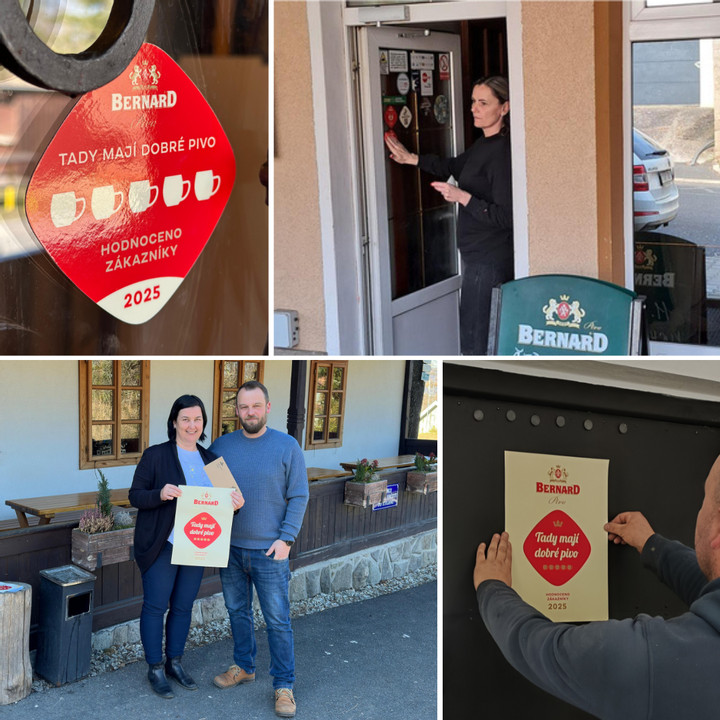„Kde mají dobré pivo?“ To je správná otázka a požadavek každého, kdo si chce zajít na pivo. Na dobré pivo. Jednoznačnou odpověď na tuto otázku lze najít na dveřích, oknech či výkladech několika stovek restaurací, hospod a barů. Rodinný pivovar Bernard předal ocenění podnikům, které si vysloužily toto hodnocení přímo od svých zákazníků v loňském roce. Provozovatelé dostali od pivovaru samolepky, kterými mohou o svém úspěchu informovat pravidelné i budoucí zákazníky.