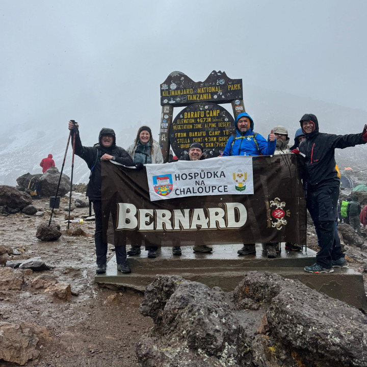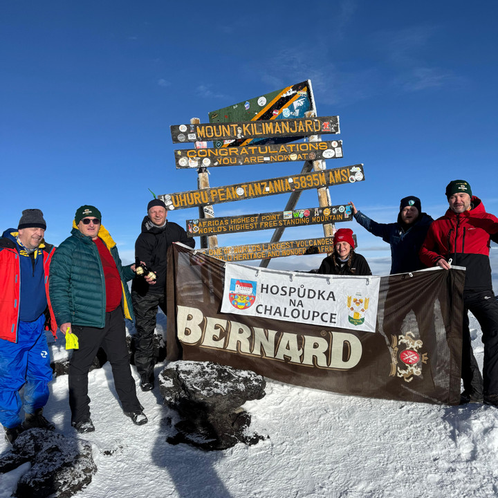Malá česká expedice stoupala do výšky 5 895 metrů pět a půl dne. „Po nočním pochodu byl výstup euforický. Opravdu jsme si nebyli jistí, že budeme schopni se nahoru dostat, zažili jsme krušné chvíle. Ale nakonec všechno klaplo, vyšlo i krásné počasí. Na vrcholu jsme měli symbolickou oslavu, při které jsme pořídili fotky včetně té s vlajkami.“ Kde se tady ale vlastně Bernard vzal? „Vzali jsme vás s sebou. Jsme s Bernardem od roku 1998. A pořád nám to spolu klape,“ popsal vztah hospůdky a pivovaru téměř manželskou terminologií Roman Kirch.