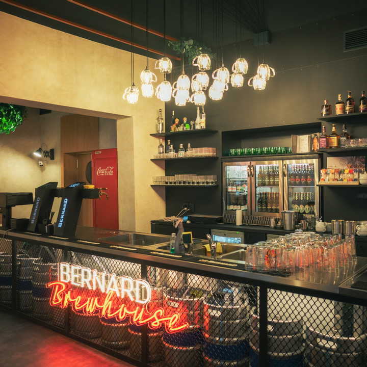 V industriálním interiéru s neotřele zpracovanou pivovarskou tématikou jsou v nabídce jídla, která se skvěle doplňují s chutí a charakterem piv, pilířem zůstává kvalita, která je pro značku Bernard typická. Hravost konceptu podporuje také 3D tiskárna, která dokáže vytvářet různé motivy či obrázky přímo na pivní pěnu. Do budoucna se Brewhouse chystá koncept rozvíjet a přidávat další prvky – například stylové nevýherní hrací automaty a další interaktivní detaily podporující zážitek z návštěvy.