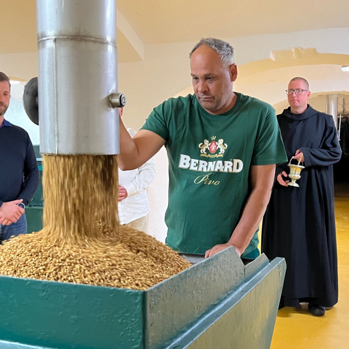 Na začátku nové kampaně požehnal práci a lidem ve sladovně převor Naum a páter Tomáš Holý z místního benediktinského kláštera. Tři desítky zaměstnanců se v nepřetržitém provozu nezastaví až do června, kdy bude kvůli vyšším teplotám výroba opět přerušena.