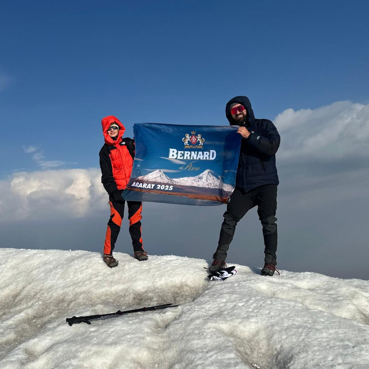 Z Araratu, kde podle bible přistála po potopě světa Noemova archa, nám cestovatel Miloslav Hubený poslal fotografii, která nás potěšila a překvapila. Na vrcholu 5 137 m vysoké hory na turecko-iránsko-arménském pomezí s kamarádkou Andreou drží transparent Bernard.