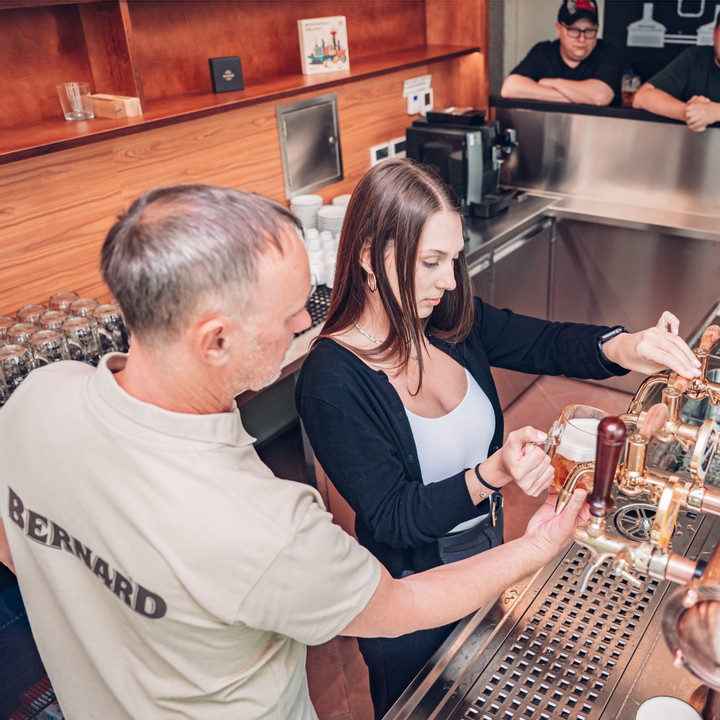 Informace a zkušenosti může u Bernarda načerpat kdokoliv. Návštěvnické centrum Bernard pořádá školu čepování i pro veřejnost, stačí sledovat kalendář na jeho stránkách: https://www.navstivtebernard.cz/cs/kalendar-akci, nebo si školení nechat připravit pro organizovanou skupinu třeba jako součást teambuildingu nebo firemní akce.