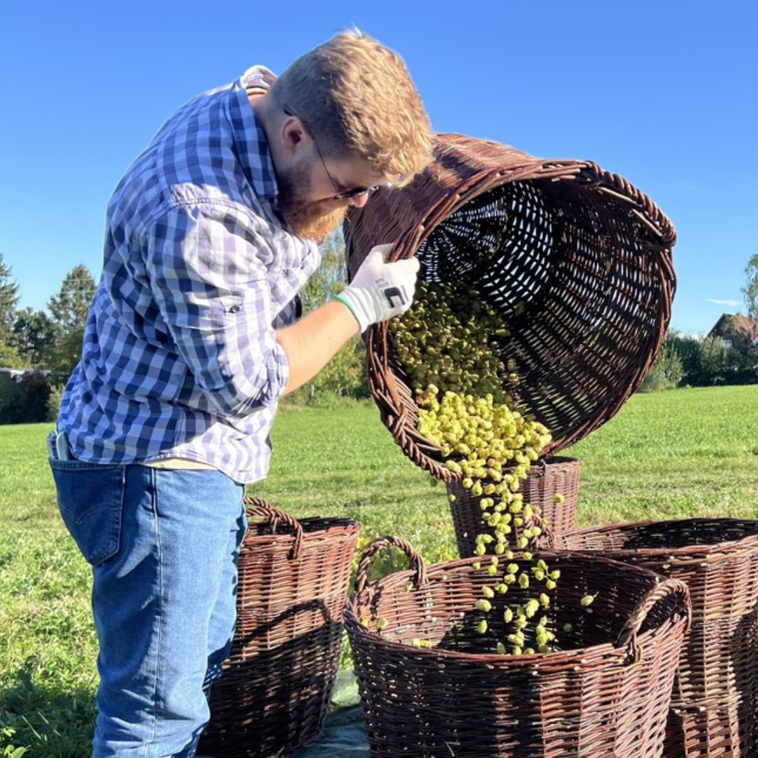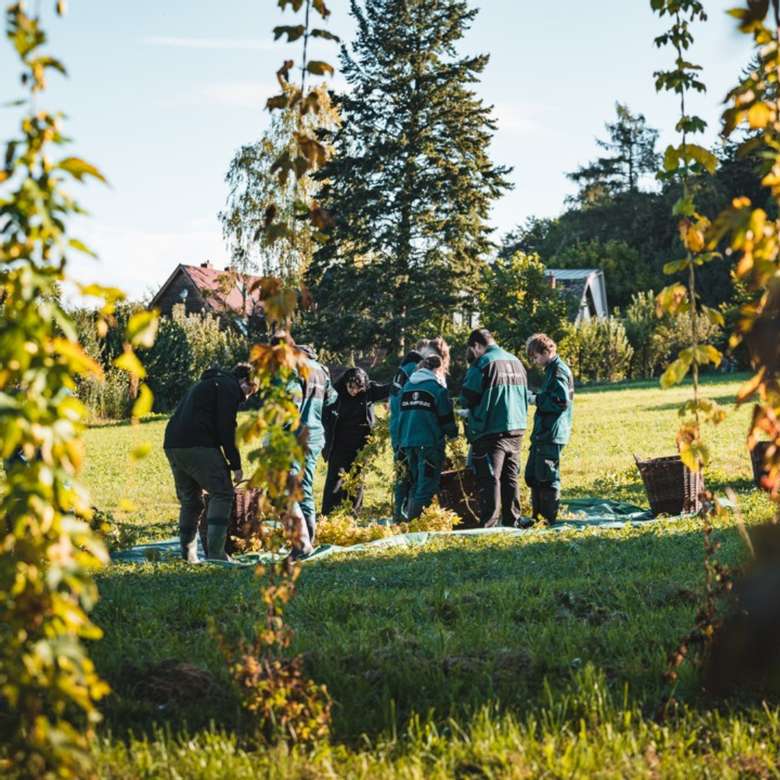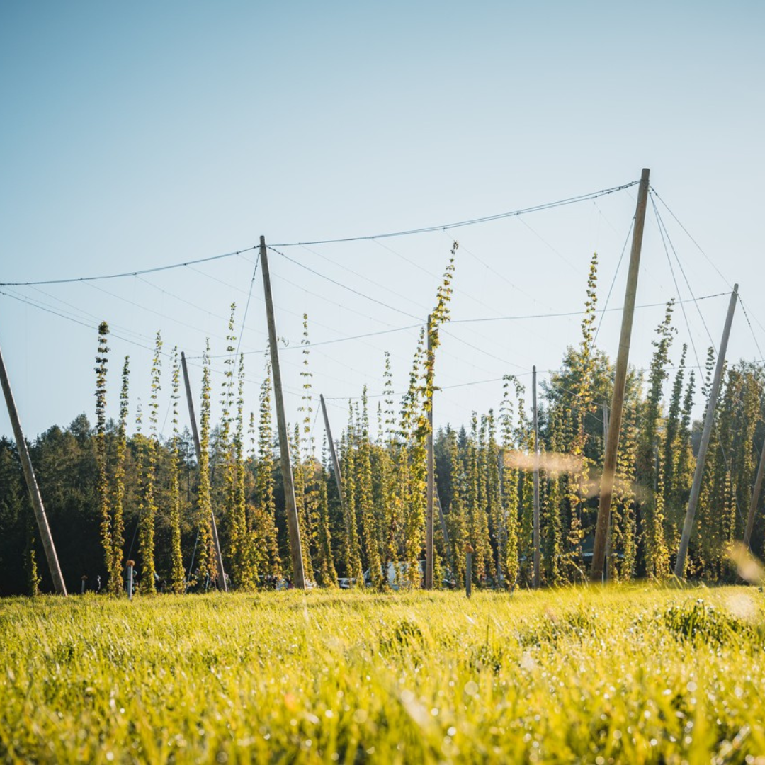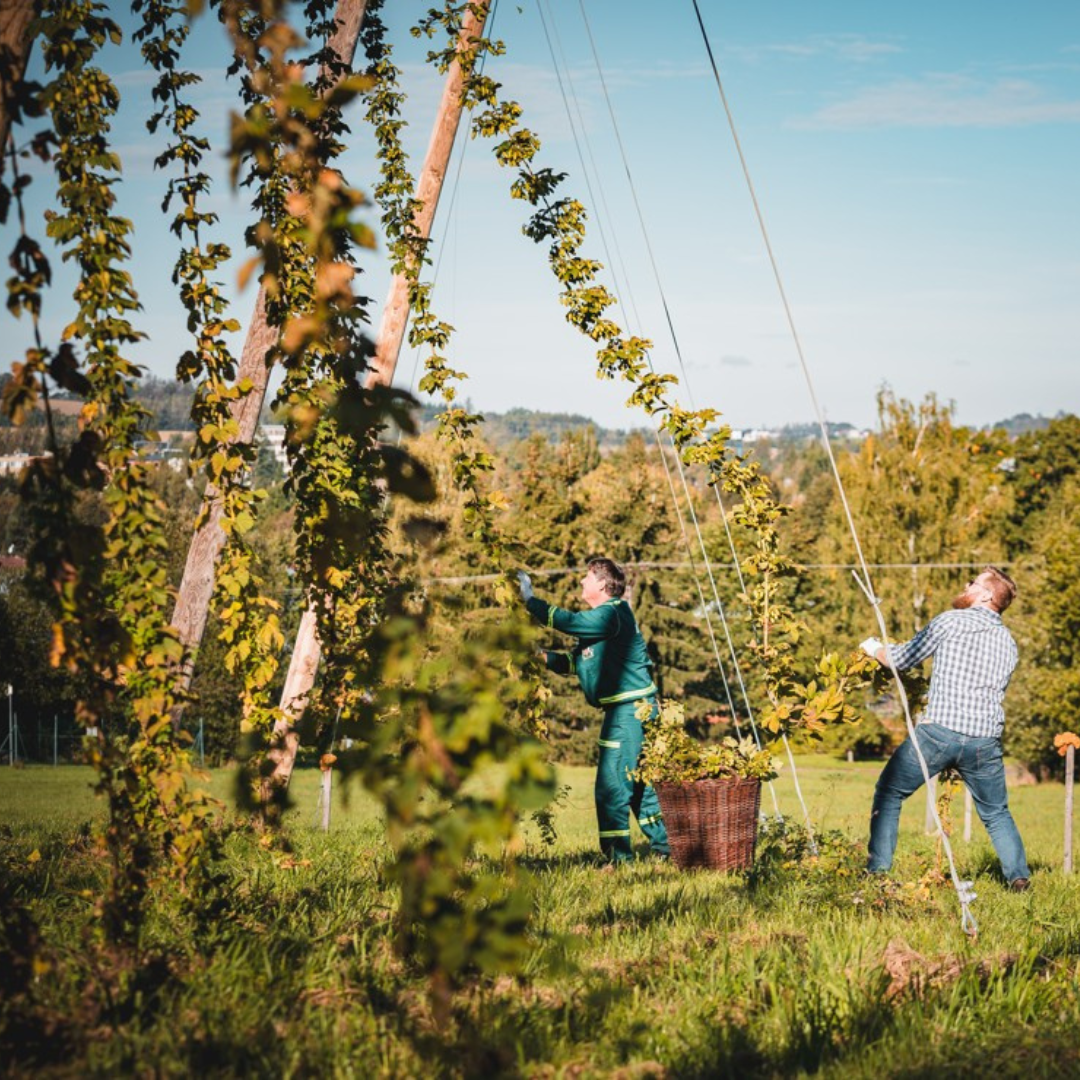 Novou chmelnici jsme založili v květnu s pomocí studentů místní České zemědělské akademie. Je zde celkem 144 rostlin šesti druhů chmele – Žateckého poloraného červeňáku, Rubínu, Harmonie, Sládku, Vitalu a Saaz late.