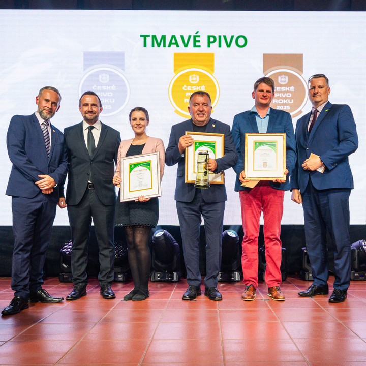 Letošní Dny českého piva slavíme naším Černým ležákem. Máme proto dvojnásobnou radost, že toto pivo získalo na degustační soutěži České pivo ve své kategorii první místo. Tomu říkáme oslava! Cenu si převzal náš vrchní sládek Josef Vávra (na snímku uprostřed).